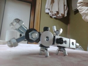 スターターキットから作りました。象です。太く長い鼻は、丸ナットと袋ナットを使い、耳は蝶ボルトで表現しました。